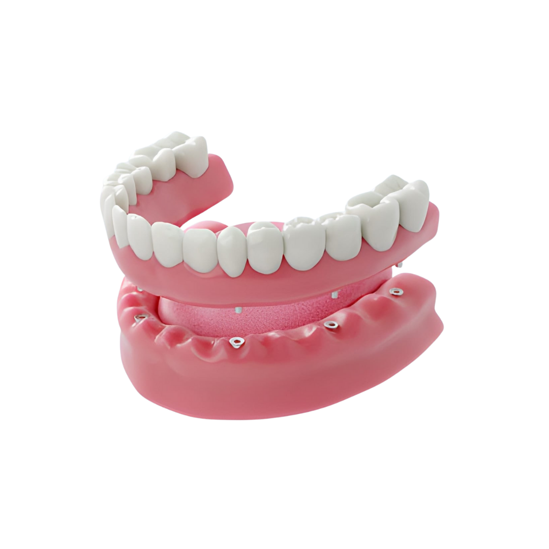By establishing two implanted attachments to the lower jaw, an overdenture is able to sit securely in place to instantly increase retention, stability, and comfort. This is especially important in lower-jaw full-denture situations where traditional dentures tend to have less adhesion due to a limited foundation and the tongue muscle dislodging the prosthetic teeth.